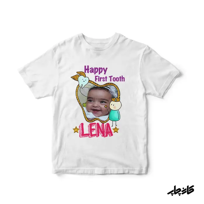 چاپ بادی بچگانه با طرح دلخواه دندونی با طرح و اسم دلخواه موجود در فروشگاه کارن چاپ از جنس نخ پنبه و پلی استر بوده که ۷۰% آن پنبه و ۳۰% آن پلی استر می باشد .