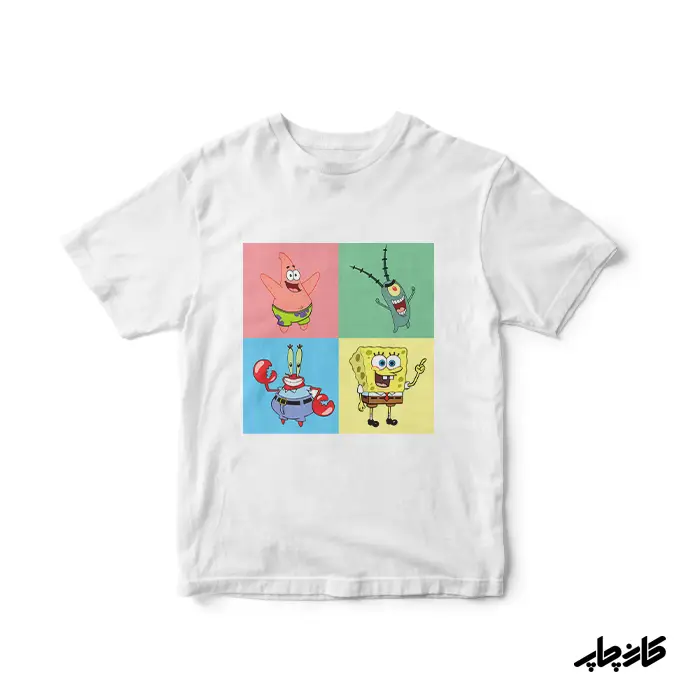 چاپ تیشرت بچگانه با طرح دلخواه باب اسفنجی و دوستاش موجود در فروشگاه کارن چاپ از جنس نخ پنبه و پلی استر بوده که ۷۰% آن پنبه و ۳۰% آن پلی استر می باشد .