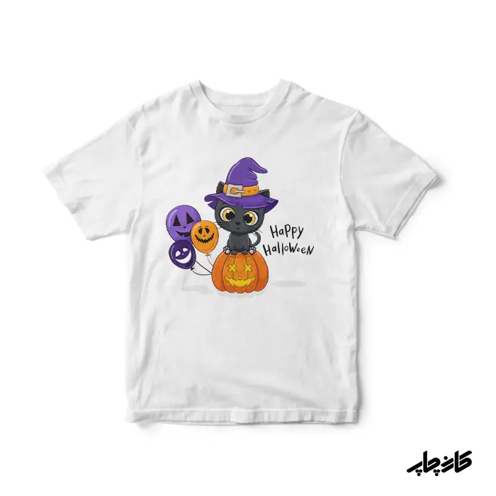 چاپ لباس با طرح دلخواه تیشرت بچگانه گربه هالووین موجود در فروشگاه کارن چاپ از جنس نخ پنبه و پلی استر بوده که ۷۰% آن پنبه و ۳۰% آن پلی استر می باشد .