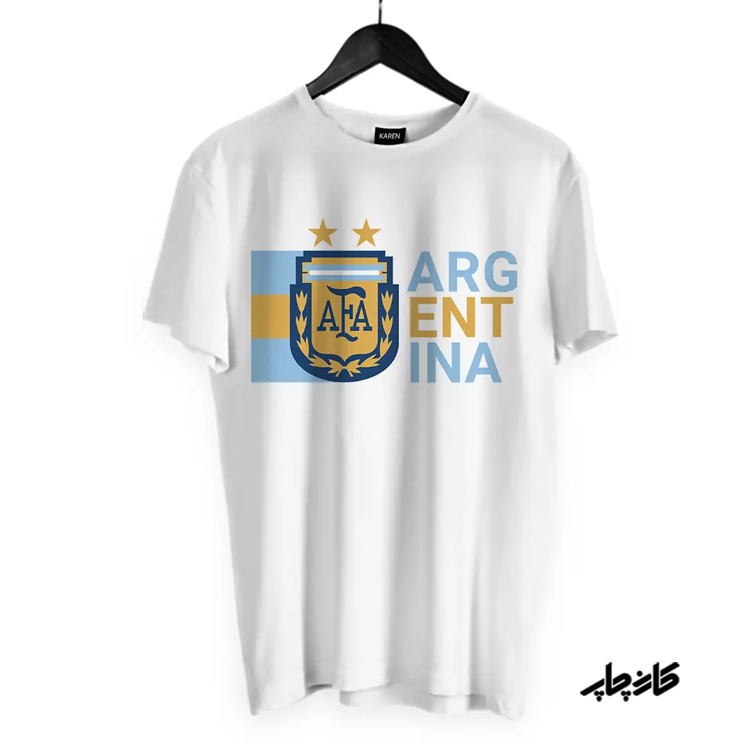 تیشرت با طرح دلخواه تیشرت تیم ملی آرژانتین موجود در فروشگاه کارن چاپ از جنس نخ پنبه و پلی استر بوده که ۷۰% آن پنبه و ۳۰% آن پلی استر می باشد .