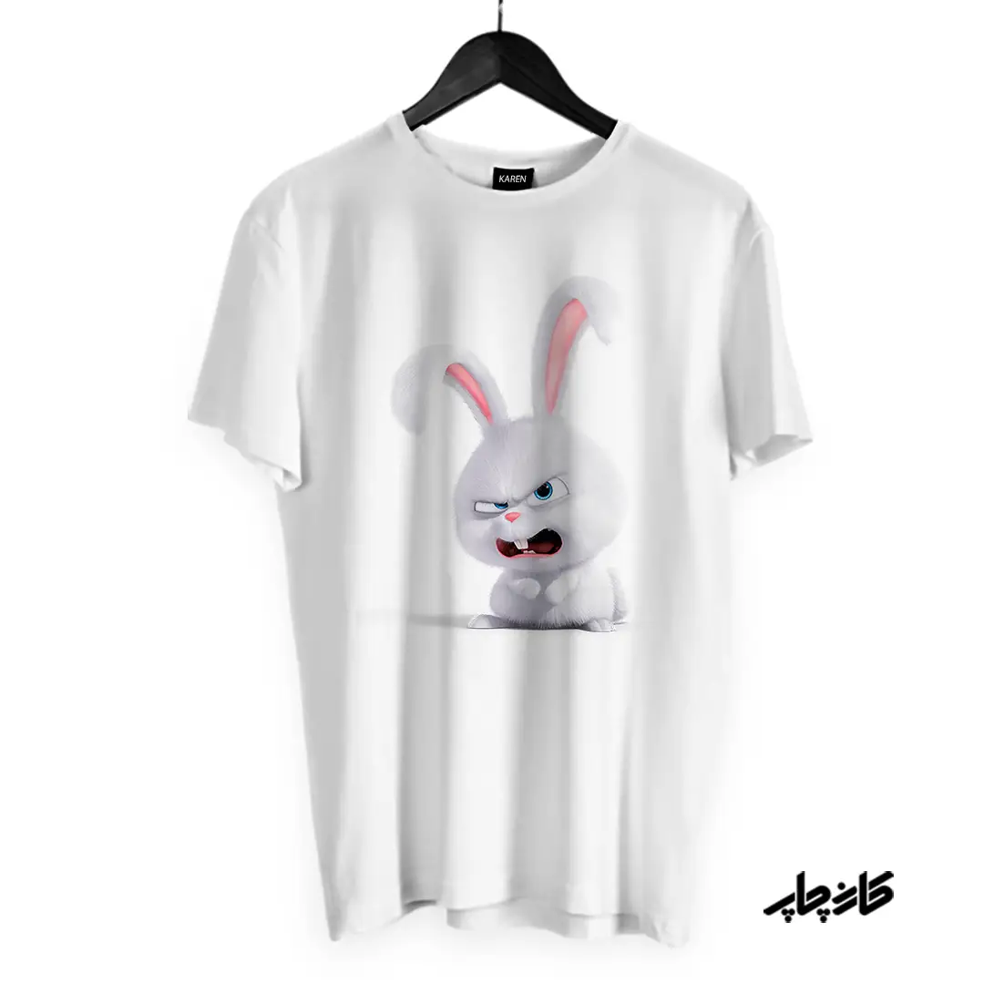 چاپ تیشرت خرگوش عصبانی یقهگرد در دو نوع آستین بلند و آستین کوتاه، کاملا قابل شستشو برای سفارش موجود است.