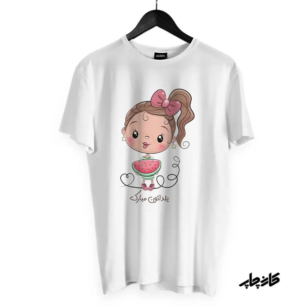 امکان چاپ هر نوع طرح دلخواه بر روی تیشرت برای شما مشتریان عزیز کارن چاپ فراهم شده است. برای خرید تیشرت دختر یلدایی یا برای خرید تیشرت طرح دلخواه خودتان، کافی است طرح موردنظرتان را برای ما ارسال کنید. کارن چاپ با بهترین کیفیت، تیشرت شما را چاپ کرده و در کمترین زمان ممکن، برای شما ارسال میکند. تخصص ما چاپ تیشرت طرح دلخواه مشتری است. خریدی آسان و امن را با ما تجربه کنید.