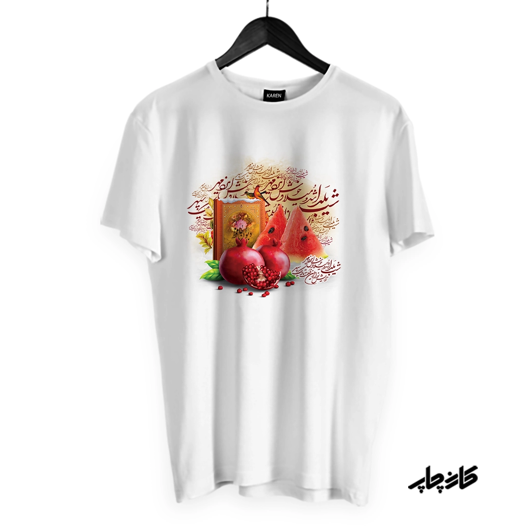 چاپ تیشرت شب یلدا حافظ یقهگرد در دو نوع آستین بلند و آستین کوتاه، کاملا قابل شستشو برای سفارش موجود است.