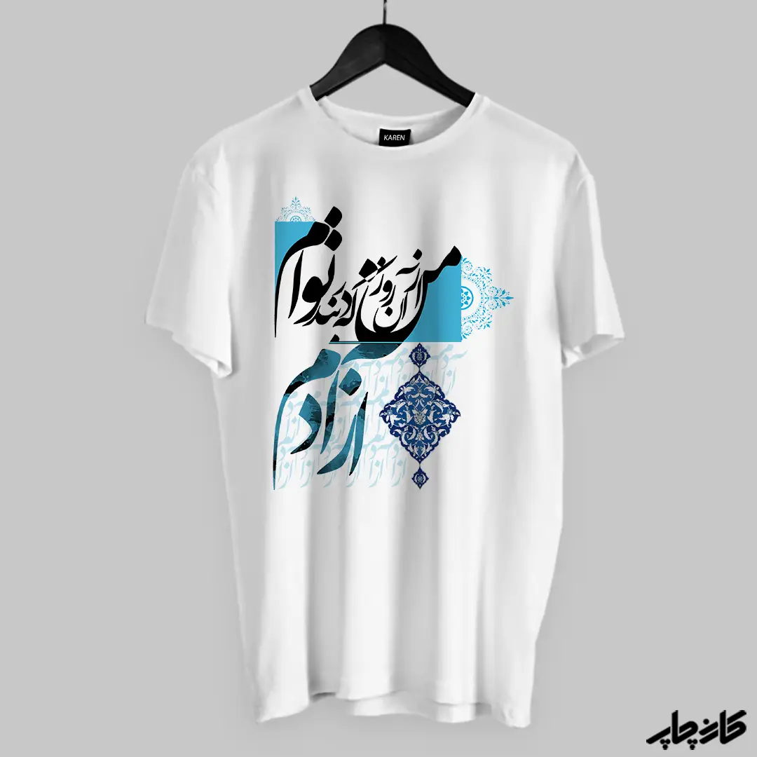 تیشرت با طرح دلخواه تایپوگرافی شعر 3 موجود در فروشگاه کارن چاپ از جنس نخ پنبه و پلی استر بوده که ۷۰% آن پنبه و ۳۰% آن پلی استر می باشد .