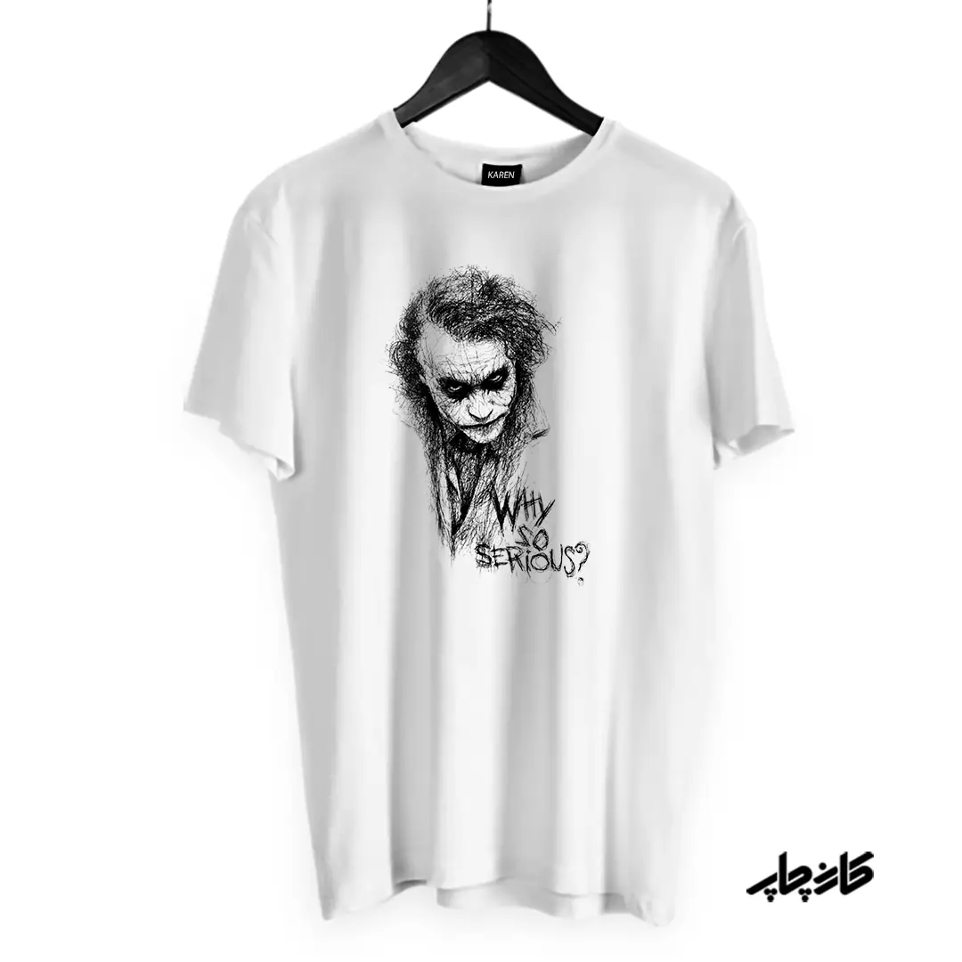 تیشرت با طرح دلخواه جوکر Joker موجود در فروشگاه کارن چاپ از جنس نخ پنبه و پلی استر بوده که ۷۰% آن پنبه و ۳۰% آن پلی استر می باشد .