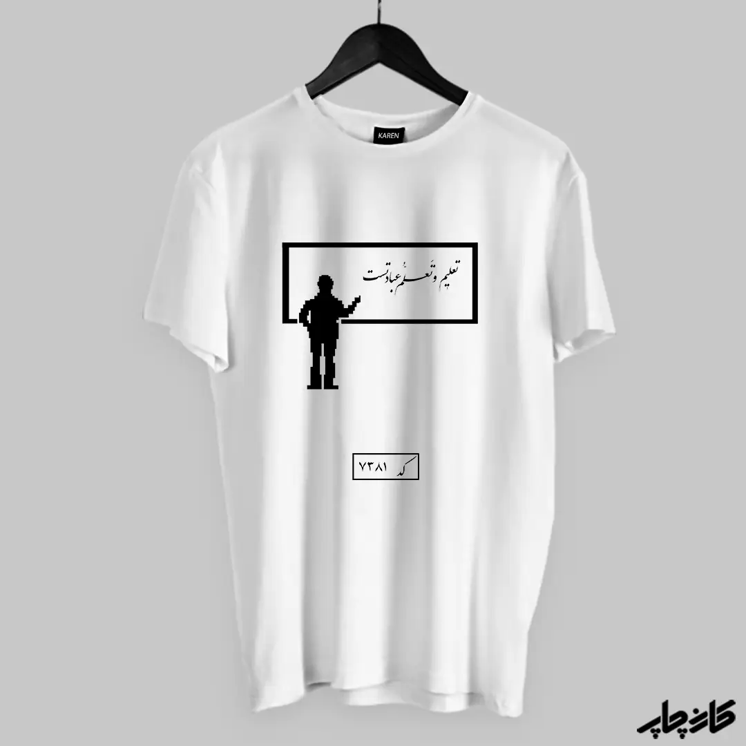 تیشرت با طرح دلخواه دفتر مشق موجود در فروشگاه کارن چاپ از جنس نخ پنبه و پلی استر بوده که ۷۰% آن پنبه و ۳۰% آن پلی استر می باشد .