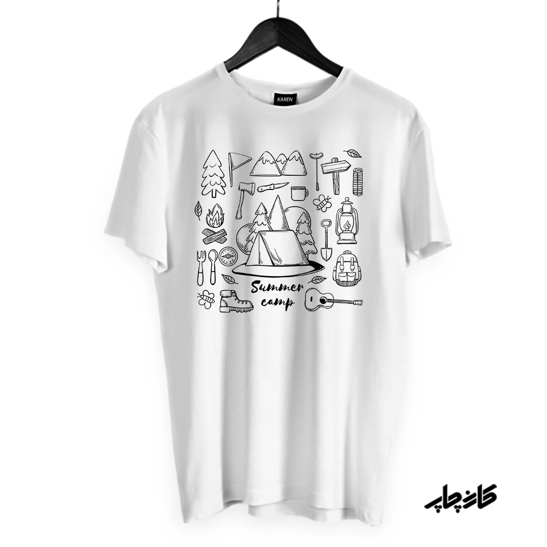 چاپ تیشرت لوازم کمپینگ یقهگرد در دو نوع آستین بلند و آستین کوتاه، کاملا قابل شستشو برای سفارش موجود است.