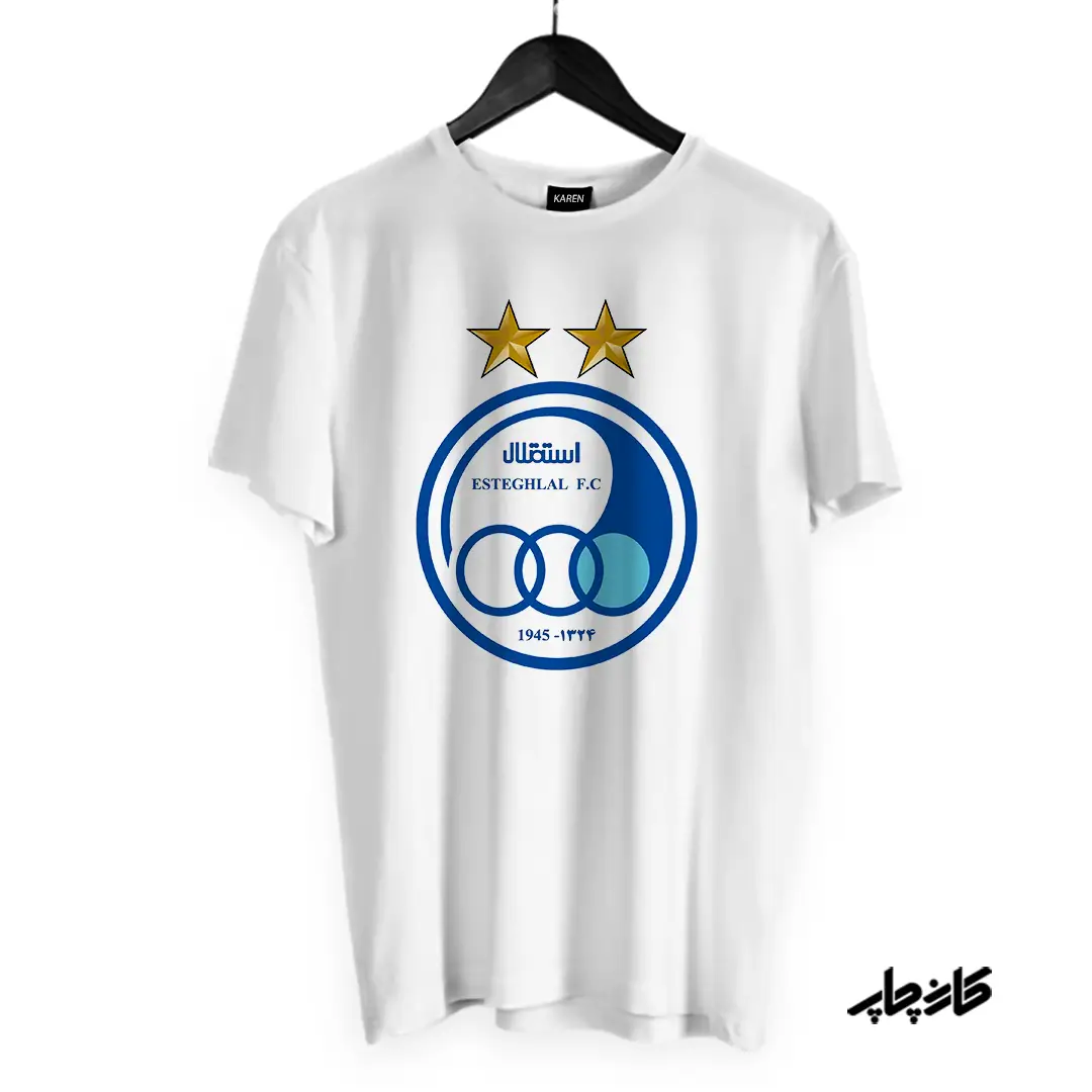 تیشرت با طرح دلخواه لوگو تیم استقلال موجود در فروشگاه کارن چاپ از جنس نخ پنبه و پلی استر بوده که ۷۰% آن پنبه و ۳۰% آن پلی استر می باشد .