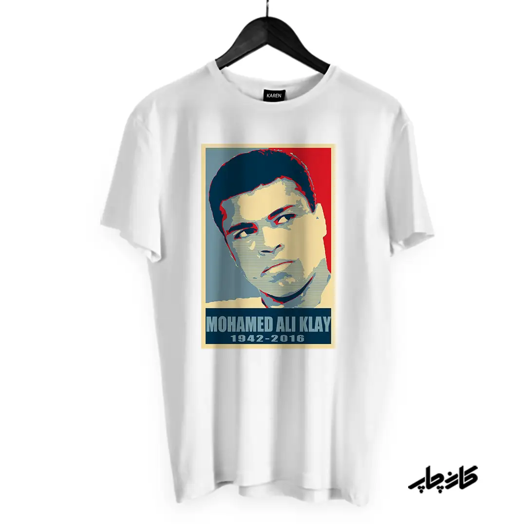 تیشرت با طرح دلخواه محمد علی کلی موجود در فروشگاه کارن چاپ از جنس نخ پنبه و پلی استر بوده که ۷۰% آن پنبه و ۳۰% آن پلی استر می باشد .