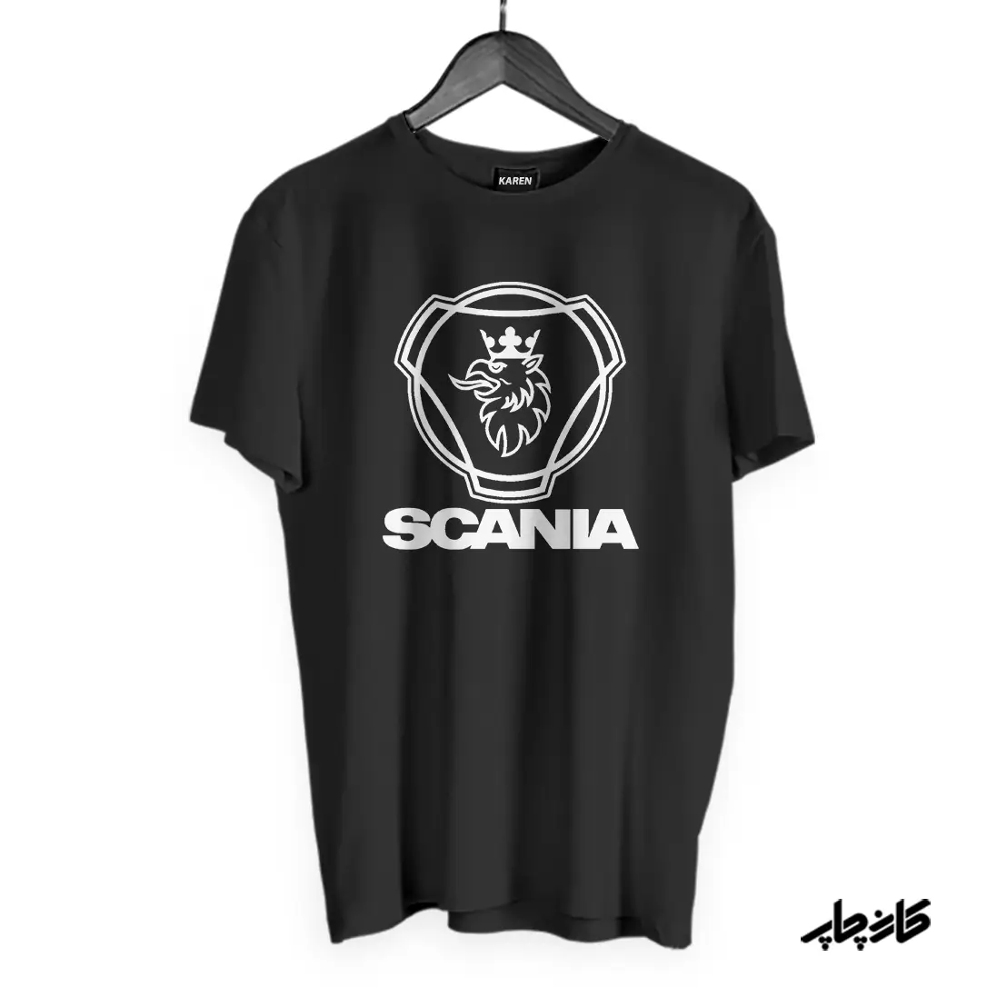 تیشرت مشکی با طرح دلخواه لوگو اسکانیا طلایی محصول کارن چاپ جنس این تیشرت مشکی از الیاف پنبه ۱۰۰% تشکیل شده است. که برای استفاده طولانی مدت بسیار مناسب می باشند. هنگام پوشیدن لطافت زیادی دارد و برای پوست بدن آزار دهنده نیست.