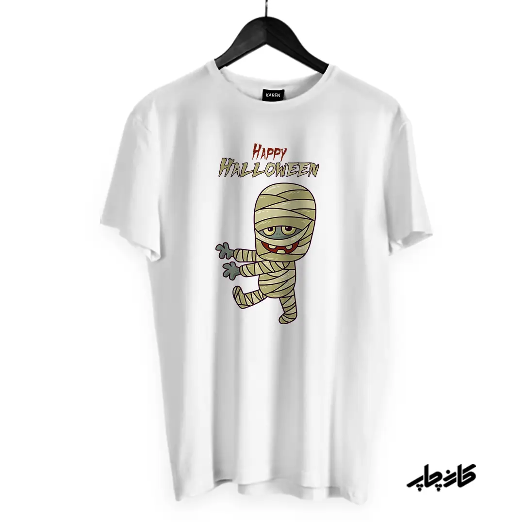 تیشرت با طرح دلخواه مومیایی هالووین Halloween موجود در فروشگاه کارن چاپ از جنس نخ پنبه و پلی استر بوده که ۷۰% آن پنبه و ۳۰% آن پلی استر می باشد .