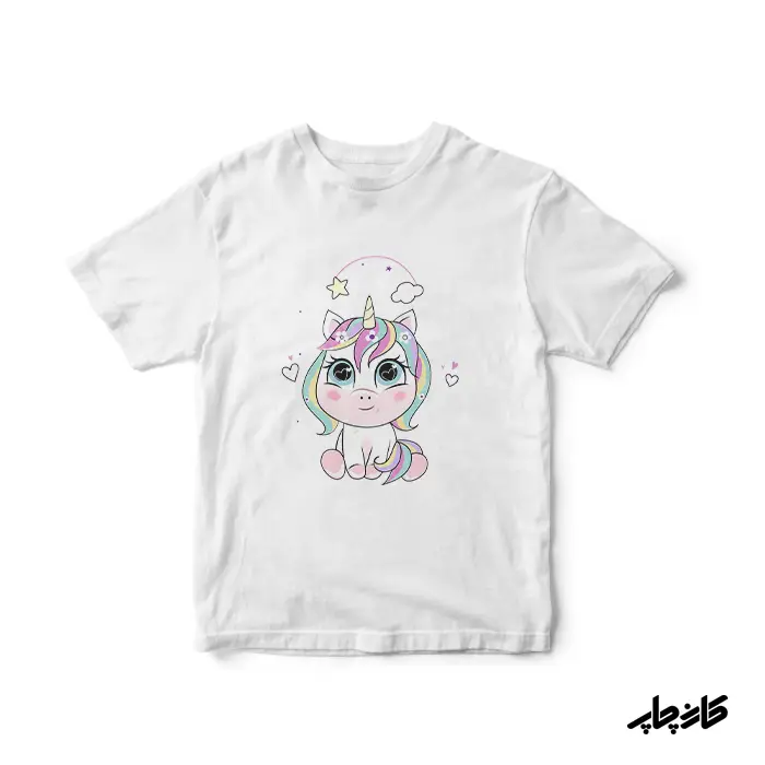 چاپ تیشرت بچگانه با طرح دلخواه پونی تک شاخ موجود در فروشگاه کارن چاپ از جنس نخ پنبه و پلی استر بوده که ۷۰% آن پنبه و ۳۰% آن پلی استر می باشد .