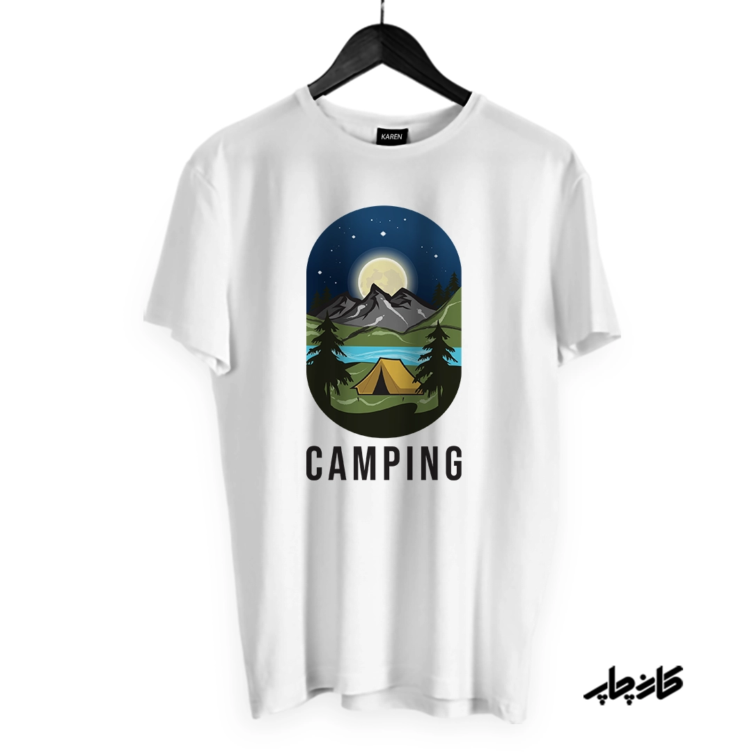 چاپ تیشرت کمپ زیر نور ماه یقهگرد در دو نوع آستین بلند و آستین کوتاه، کاملا قابل شستشو برای سفارش موجود است.