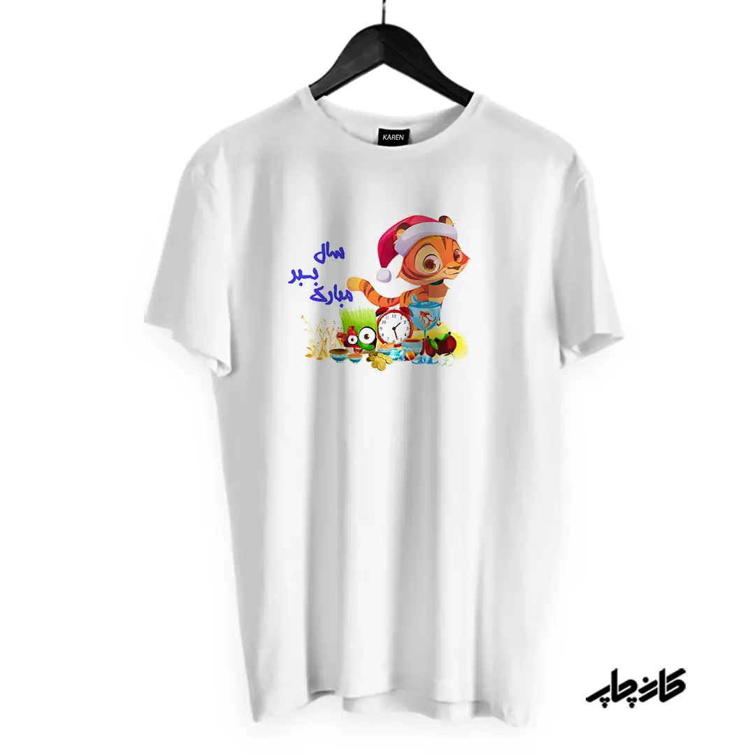 خرید تی شرت سال ببر مبارک یقهگرد در دو نوع آستین بلند و آستین کوتاه، کاملا قابل شستشو برای سفارش موجود است.