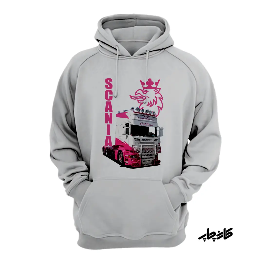سویشرت ملانژ طرح دلخواه اسکانیا موجود در فروشگاه کارن چاپ از جنس نخ پنبه و پلی استر بوده که ۷۰% آن پنبه و ۳۰% آن پلی استر می باشد . در سیستم چاپ حرارتی ، چاپ بر روی پارچه تمام نخ امکان پذیر نمی باشد که به همین دلیل برای بهتر شدن کیفیت چاپ از مقداری پلی استر در تولید این سویشرت ها استفاده می شود . از مزیت های چاپ حرارتی میتوان به قابلیت چاپ طرح تمام رنگی با وضوح بالا و از بین نرفتن کیفیت چاپ پس از شستشو اشاره کرد .