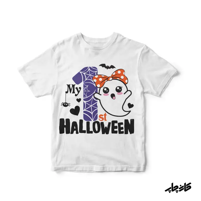 چاپ لباس با طرح دلخواه اولین هالووین من روح دختر موجود در فروشگاه کارن چاپ از جنس نخ پنبه و پلی استر بوده که ۷۰% آن پنبه و ۳۰% آن پلی استر می باشد .