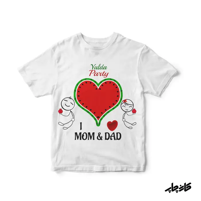 چاپ لباس با طرح دلخواه بچگانه شب یلدا دوستون دارم بابا و مامان موجود در فروشگاه کارن چاپ از جنس نخ پنبه و پلی استر بوده که ۷۰% آن پنبه و ۳۰% آن پلی استر می باشد .