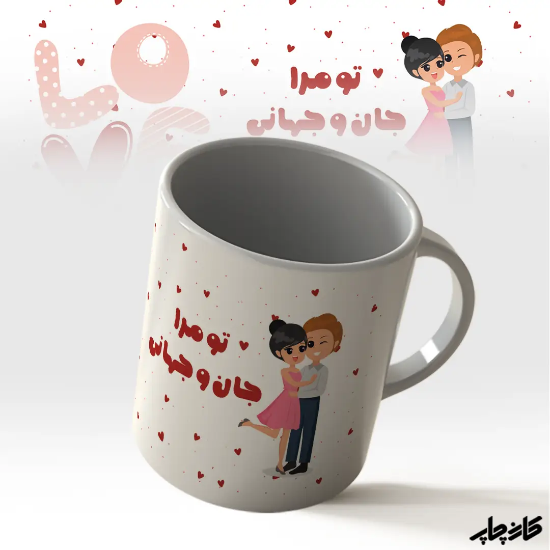 خرید ماگ تو مرا جان و جهانی موجود در فروشگاه چاپ کارن از جنس سرامیک درجه یک می باشد و در سه نوع “ساده” و “دسته و داخل رنگی” و “جادویی” موجود می باشند که شما می توانید با توجه به علاقه خود هرکدام از آنها را خریداری نمایید.