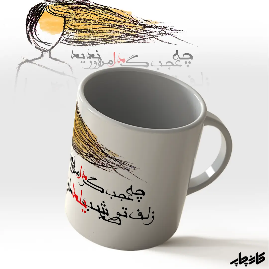 ماگ طرح تایپوگرافی شعر 6 موجود در فروشگاه کارن چاپ از جنس سرامیک درجه یک می باشد و در سه نوع “ساده” و “دسته و داخل رنگی” و “جادویی” موجود می باشند که شما می توانید با توجه به علاقه خود هرکدام از آنها را خریداری نمایید.