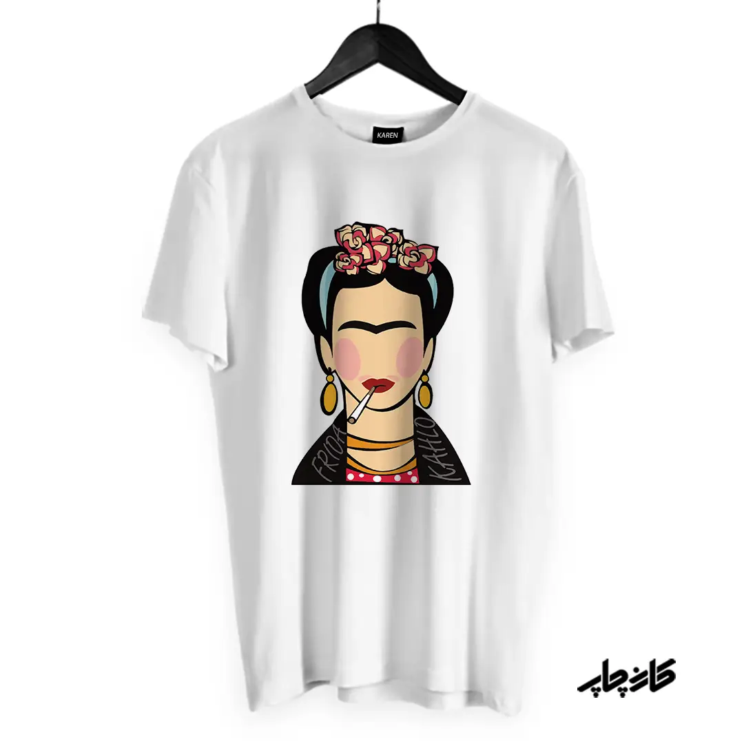چاپ تیشرت با طرح دلخواه فریدا کالو Frida kahlo موجود در فروشگاه کارن چاپ از جنس نخ پنبه و پلی استر بوده که ۷۰% آن پنبه و ۳۰% آن پلی استر می باشد .