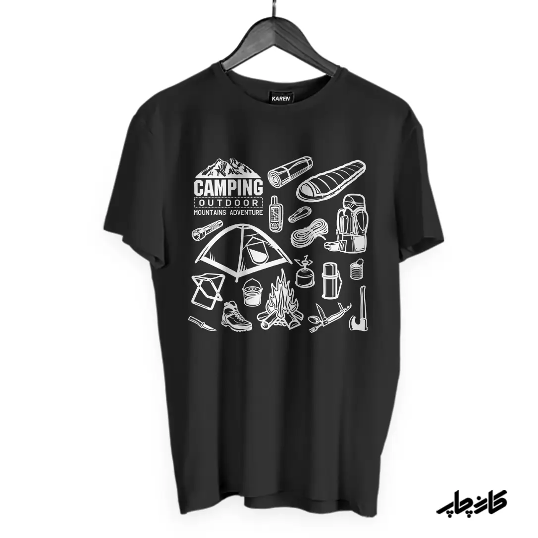 چاپ روی تیشرت مشکی کمپ در کوهستان