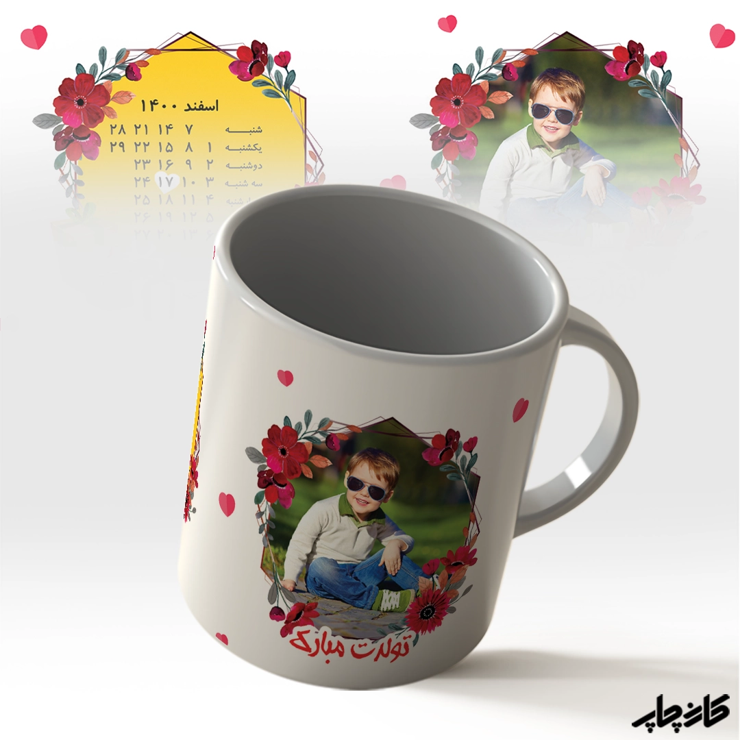 چاپ لیوان با عکس و تاریخ تولد