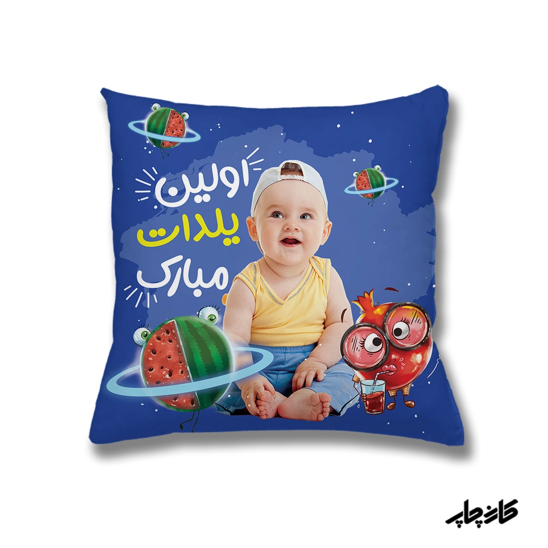 چاپ روی کوسن اولین یلدات مبارک ؛ کارن چاپ از پارچه مخمل با کیفیت تولید شده است.