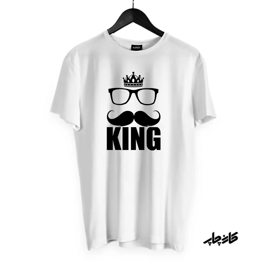 چاپ روی تیشرت با طرح دلخواه کینگ عینکی King موجود در فروشگاه کارن چاپ از جنس تی شرت نخ پنبه و پلی استر بوده که ۷۰% آن پنبه و ۳۰% آن پلی استر می باشد .