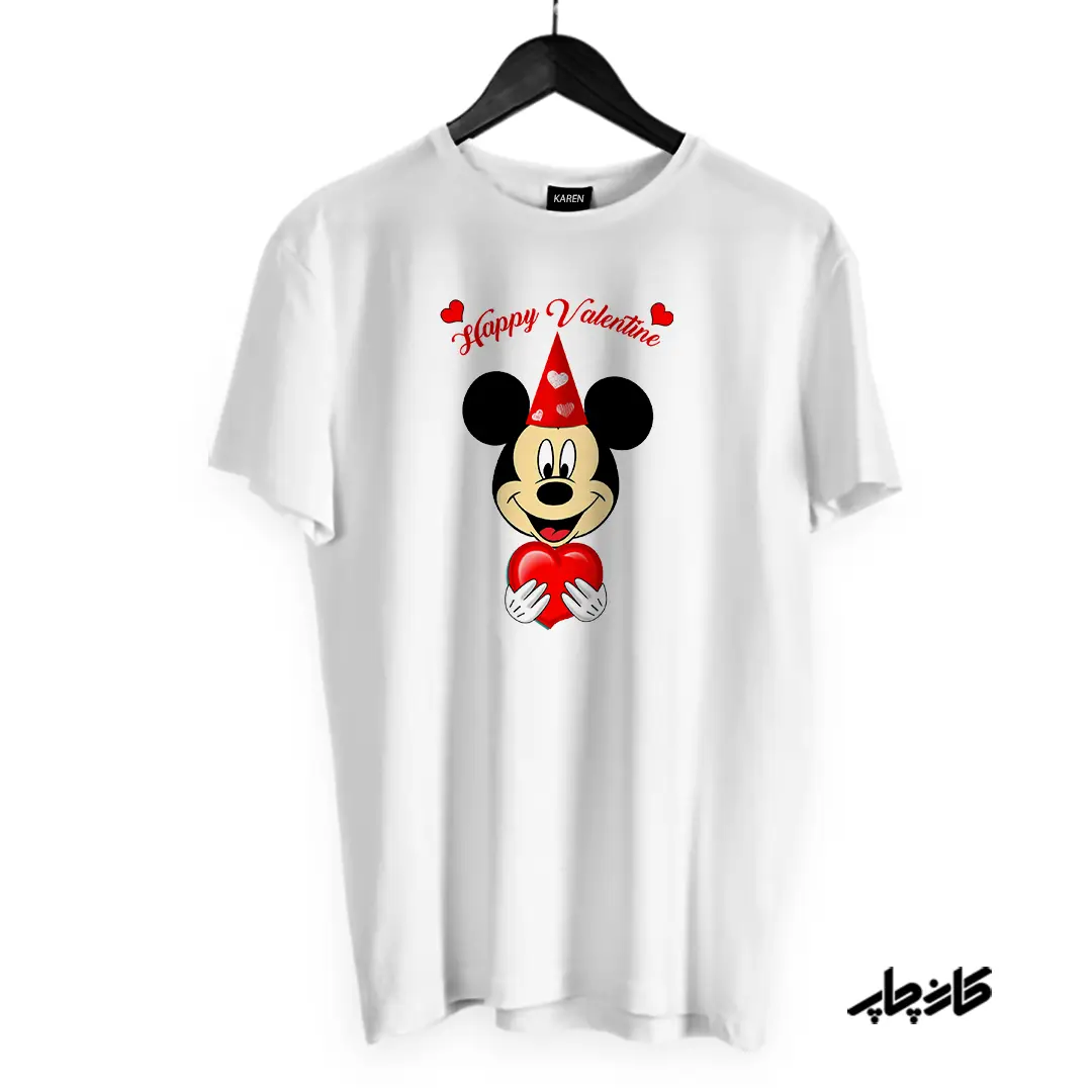 چاپ روی تیشرت با طرح دلخواه ولنتاین میکی موز پسر موجود در فروشگاه کارن چاپ از جنس تی شرت نخ پنبه و پلی استر بوده که ۷۰% آن پنبه و ۳۰% آن پلی استر می باشد .