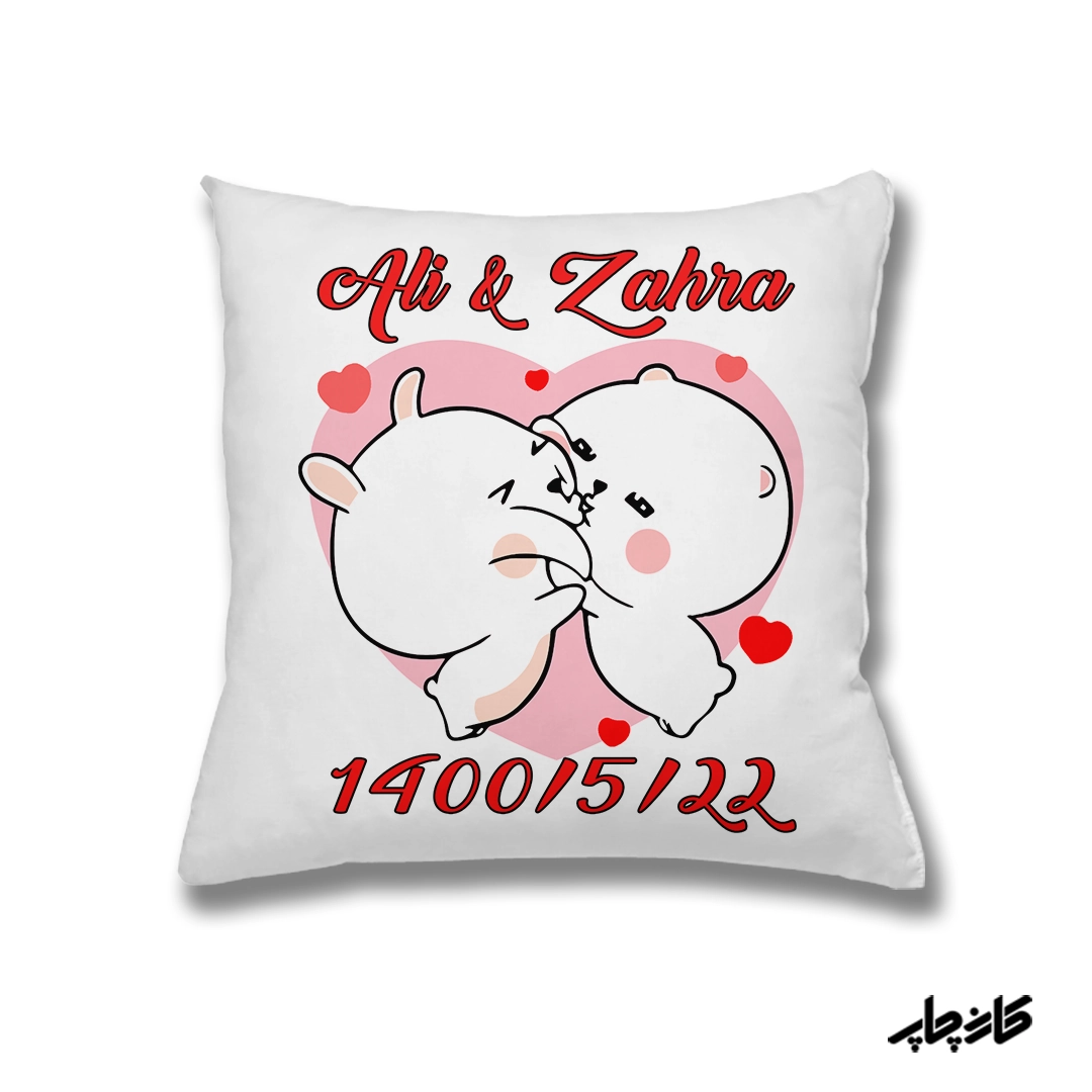 چاپ روی کوسن ولنتاین خرسی ؛ کارن چاپ از پارچه مخمل با کیفیت تولید شده است.