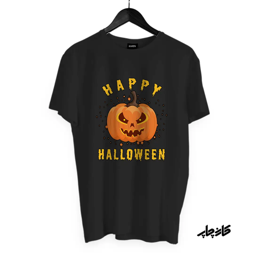 چاپ طرح روی تیشرت مشکی هالووین Happy Halloween