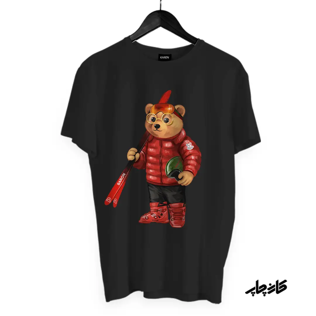 چاپ طرح دلخواه روی تیشرت های نخ پنبه خرس اسکی باز به ۳ روش لیبلی(ونیل)، مدیا و دیجیتال انجام می پذیرد.