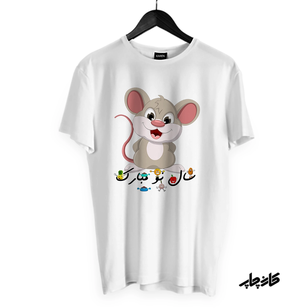 تیشرت با طرح دلخواه سال نو مبارک موش 1399 موجود در فروشگاه کارن چاپ از جنس نخ پنبه و پلی استر بوده که ۷۰% آن پنبه و ۳۰% آن پلی استر می باشد .