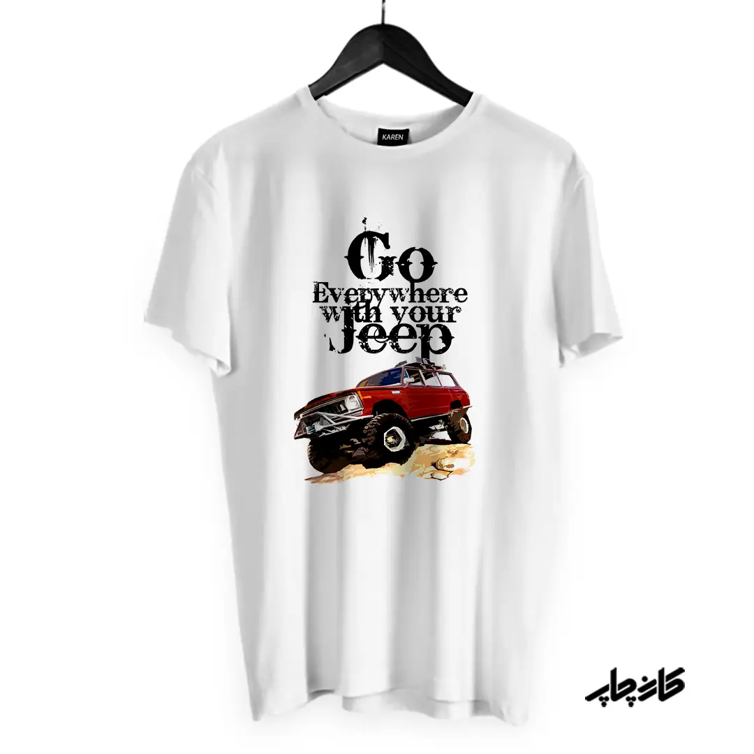 خرید تیشرت طرح با جیپ در همه جا یقهگرد در دو نوع آستین بلند و آستین کوتاه، کاملا قابل شستشو برای سفارش موجود است.
