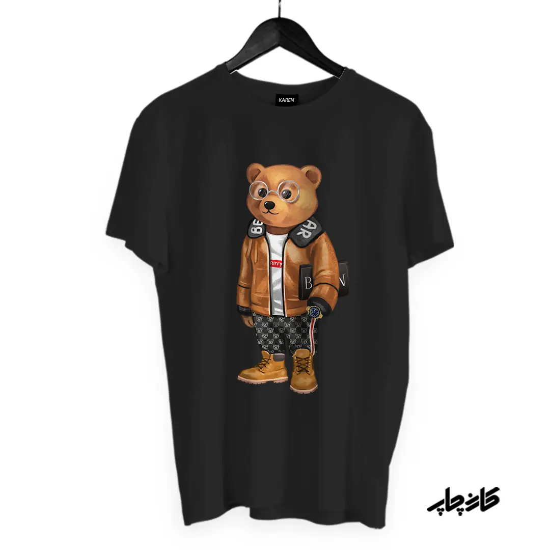 چاپ طرح دلخواه روی تیشرت های نخ پنبه خرس چرم پوش به ۳ روش لیبلی(ونیل)، مدیا و دیجیتال انجام می پذیرد.