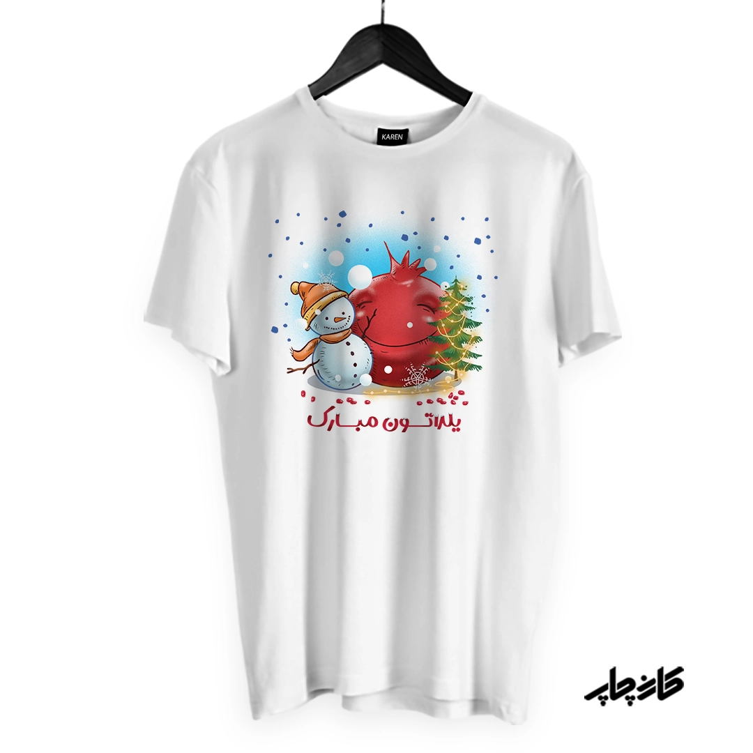 چاپ تیشرت شب برفی یلدا یقهگرد در دو نوع آستین بلند و آستین کوتاه، کاملا قابل شستشو برای سفارش موجود است.