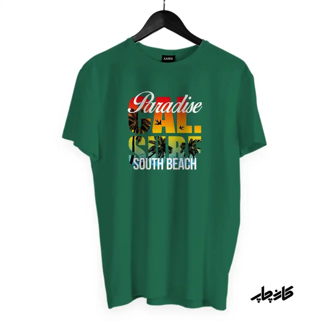 عنوان محصول: تیشرت طرح بهشت موج سواری – چاپ باکیفیت | کالای همراه طبیعتگرا