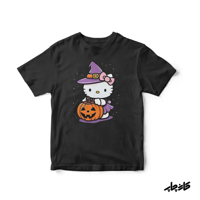 چاپ لباس با طرح دلخواه تیشرت بچگانه کیتی هالووین موجود در فروشگاه کارن چاپ از دو نوع جنس 100 % نخ پنبه و پلی استر بوده که ۷۰% آن پنبه و ۳۰% آن پلی استر می باشد .