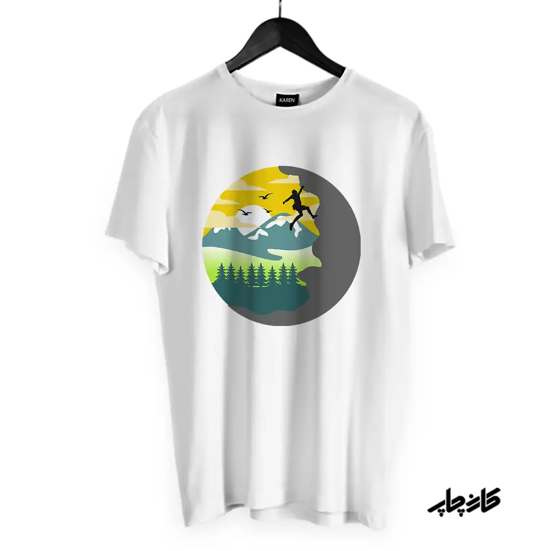 عنوان محصول: تیشرت طرح سنگ نوردی در طبیعت– چاپ باکیفیت | کالای همراه طبیعتگرا