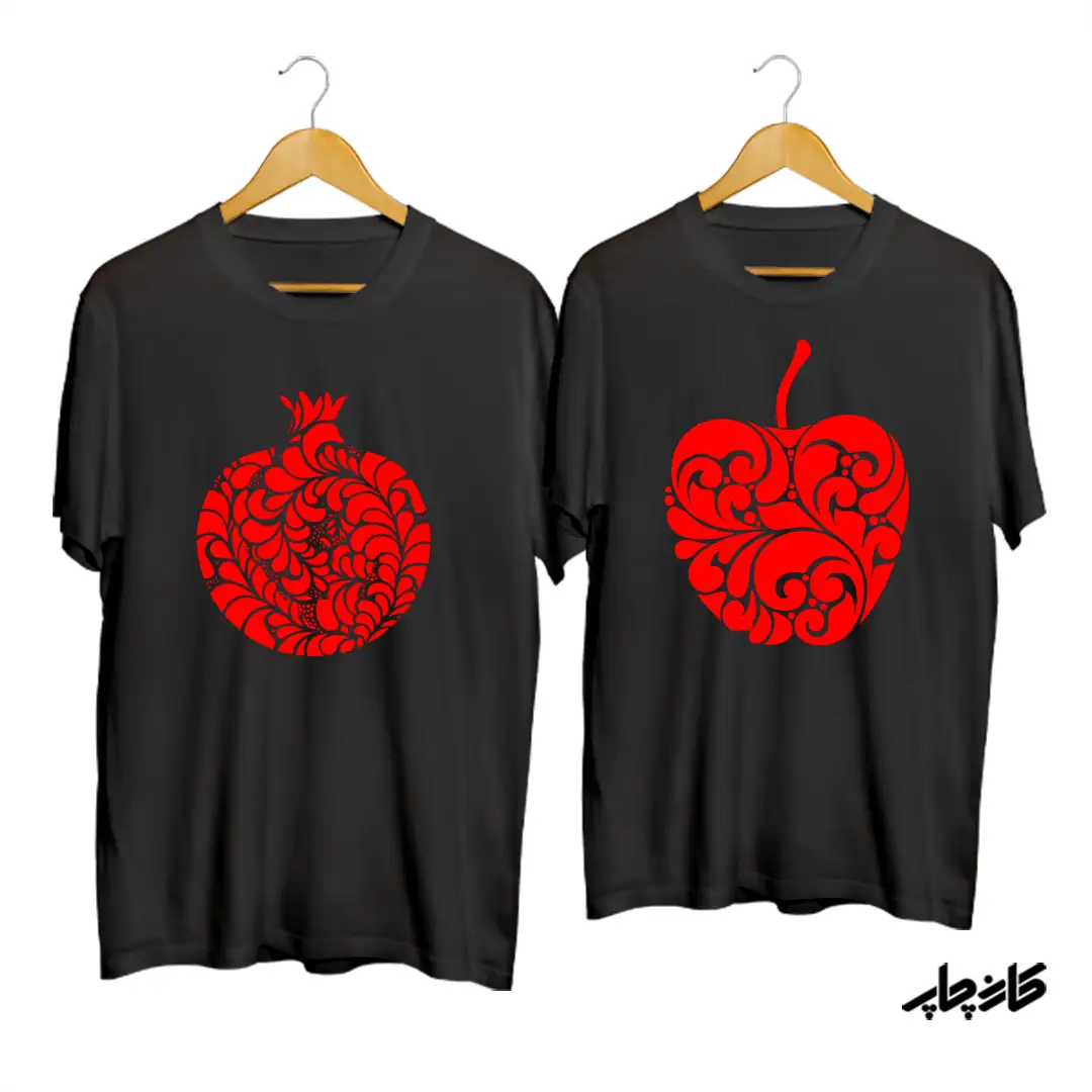 تیشرت ست نخی انار و سیب یلدایی طرح دلخواه محصول کارن چاپ جنس این تیشرت مشکی از الیاف پنبه ۱۰۰% تشکیل شده است. که برای استفاده طولانی مدت بسیار مناسب می باشند. هنگام پوشیدن لطافت زیادی دارد و برای پوست بدن آزار دهنده نیست.